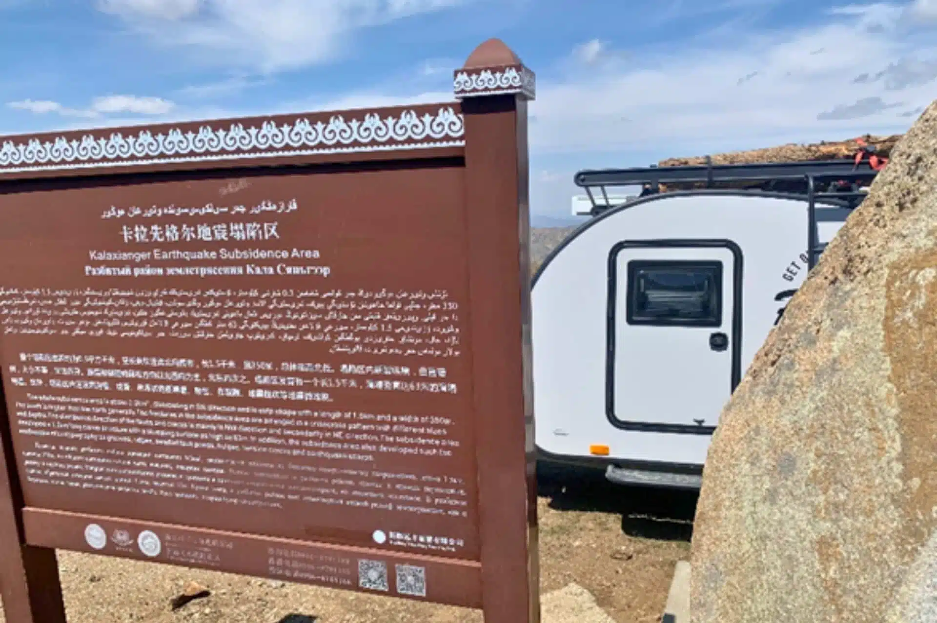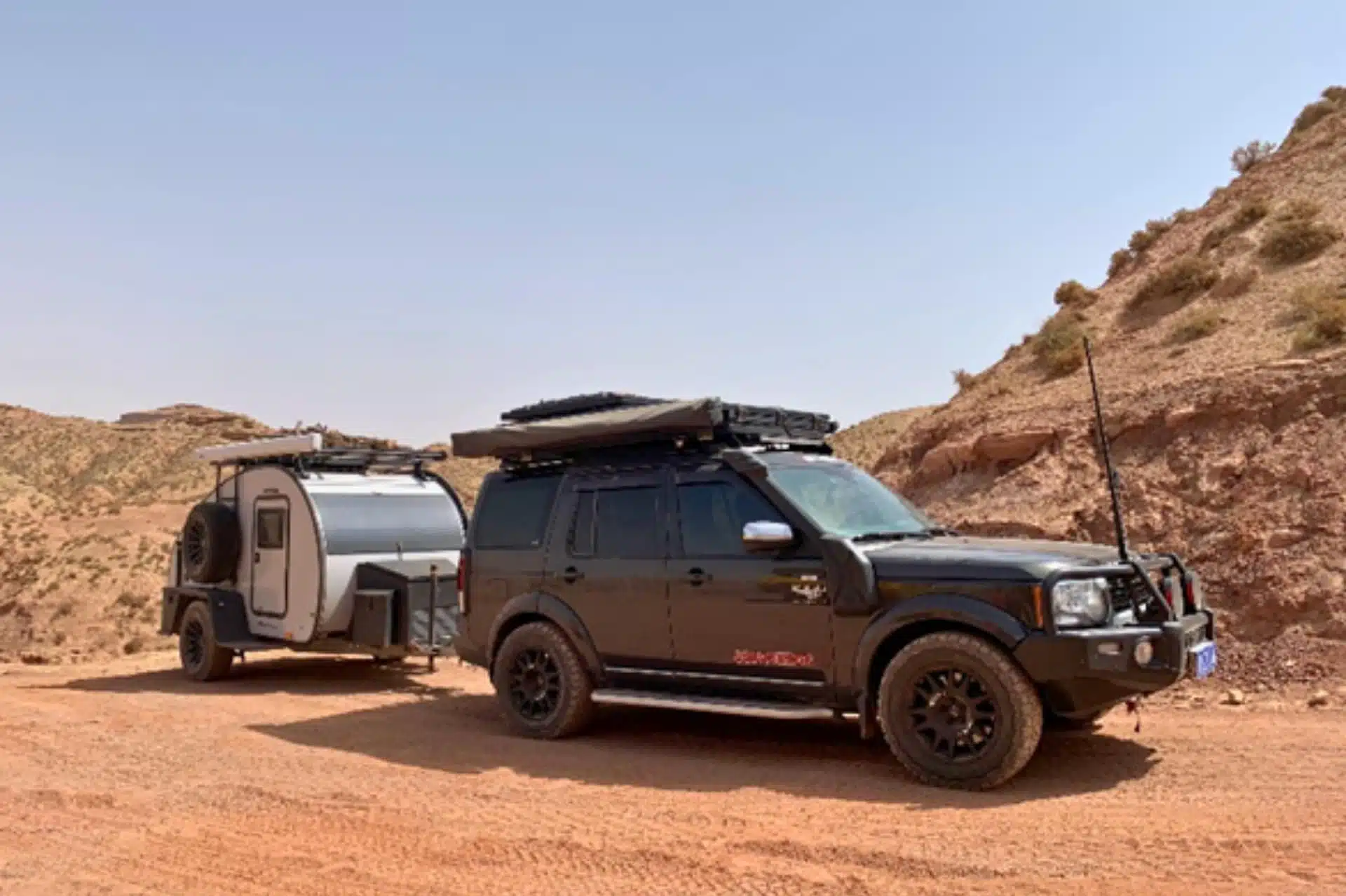 在赫尔罗露营车上行驶了2000公里后,我们抵达阿拉善右旗参加阿拉善英雄大会,这是一个由众多越野狂热分子组成的集会。可以看到各种类型的越野车,例如吉普、路虎和坦克(中国品牌4×4)。活动结束后,我们沿着河西走廊前往酒泉市和嘉峪关市,然后一路继续行驶1000多公里,前往新疆。